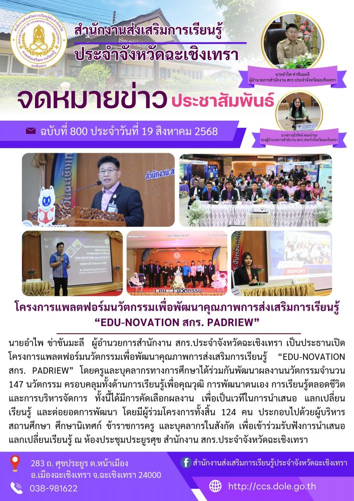 โครงการแพลตฟอร์มนวัตกรรมเพื่อพัฒนาคุณภาพการส่งเสริมการเรียนรู้ EDU-NOVATION สกร. PADRIEW