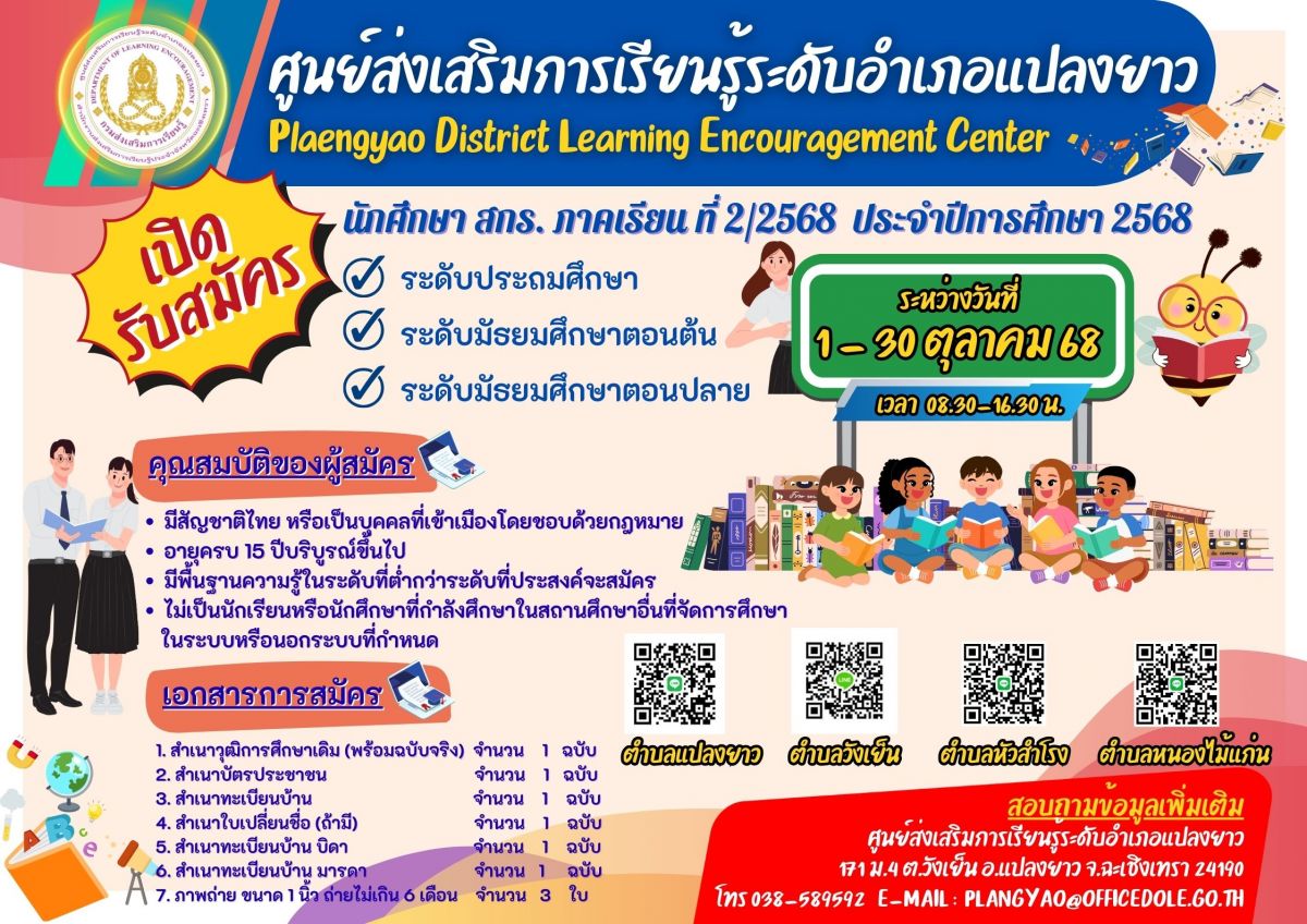 ขยายเวลา ถึง 15 พฤษภาคม 2567 ประกาศศูนย์ส่งเสริมการเรียนรู้อำเภอแปลงยาว เรื่อง รับสมัครบุคคลเพื่อคัดเลือกเป็นพนักงานจ้างเหมาบริการ ตำแหน่ง ครูผู้สอนคนพิการ