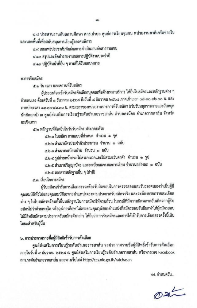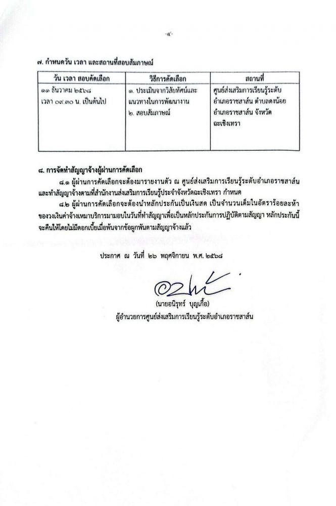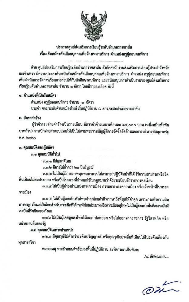 ประกาศศูนย์ส่งเสริมการเรียนรู้ระดับอำเภอราชสาส์นเรื่อง ประกาศรายชื่อผู้ผ่านการคัดเลือกเป็นพนักงานจ้างเหมาบริการ ตำแหน่งครูผู้สอนคนพิการ