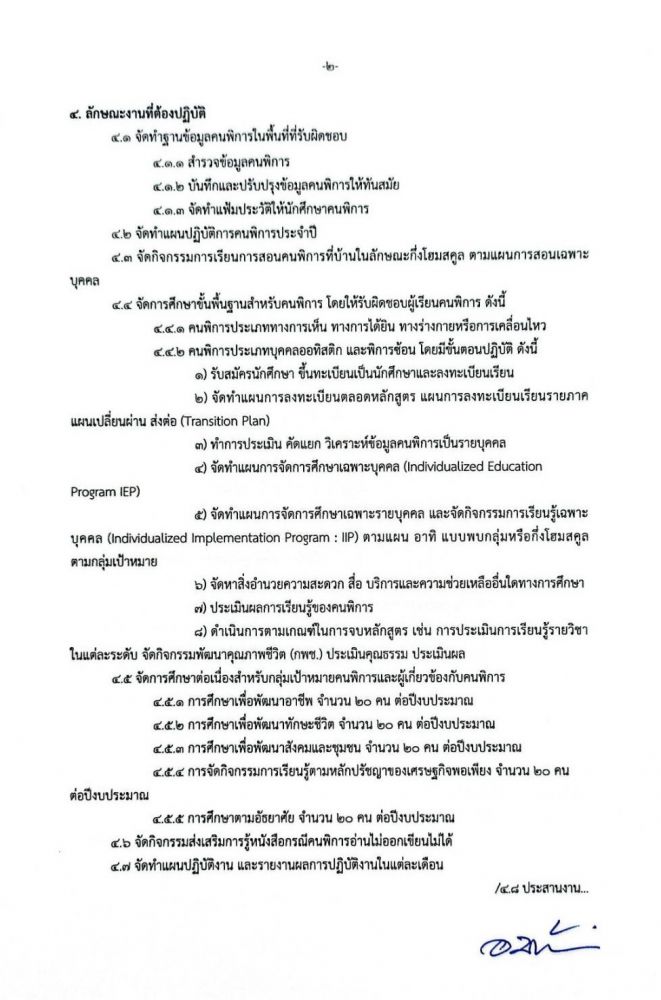 ประกาศรายชื่อผู้มีสิทธิ์เข้ารับการคัดเลือกเป็นพนักงานจ้างเหมาบริการ ตำแหน่งครูผู้สอนคนพิการ